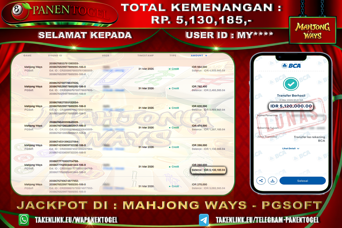 Selamat Kepada User ID : MY**** Member PANENTOGEL JACKPOT MAHJONG WAYS
