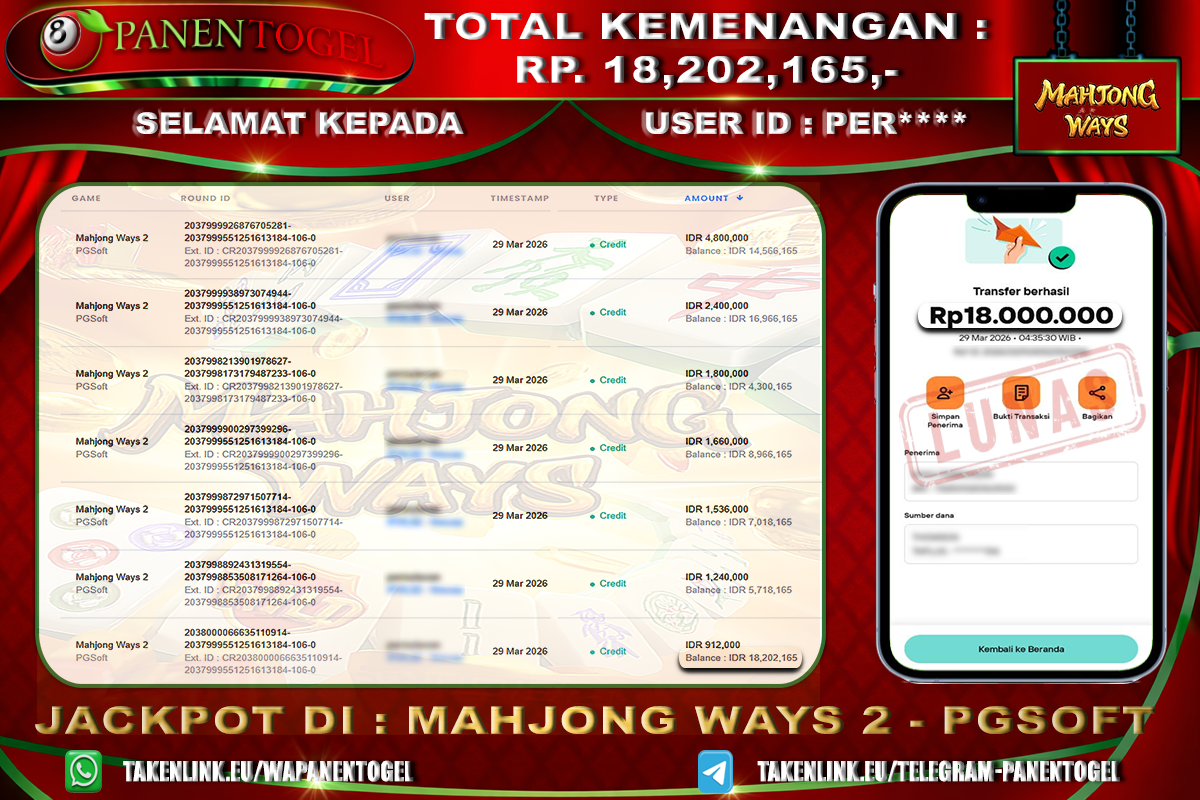 BUKTI KEMENANGAN SLOT PANENTOGEL Rp. 18.202.165, - LUNAS