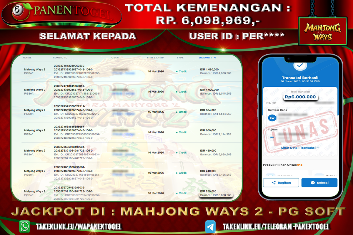 Update terkini bukti jackpot • Testimoni member • Bukti transaksi real dari toto togel online PANENTOGEL.