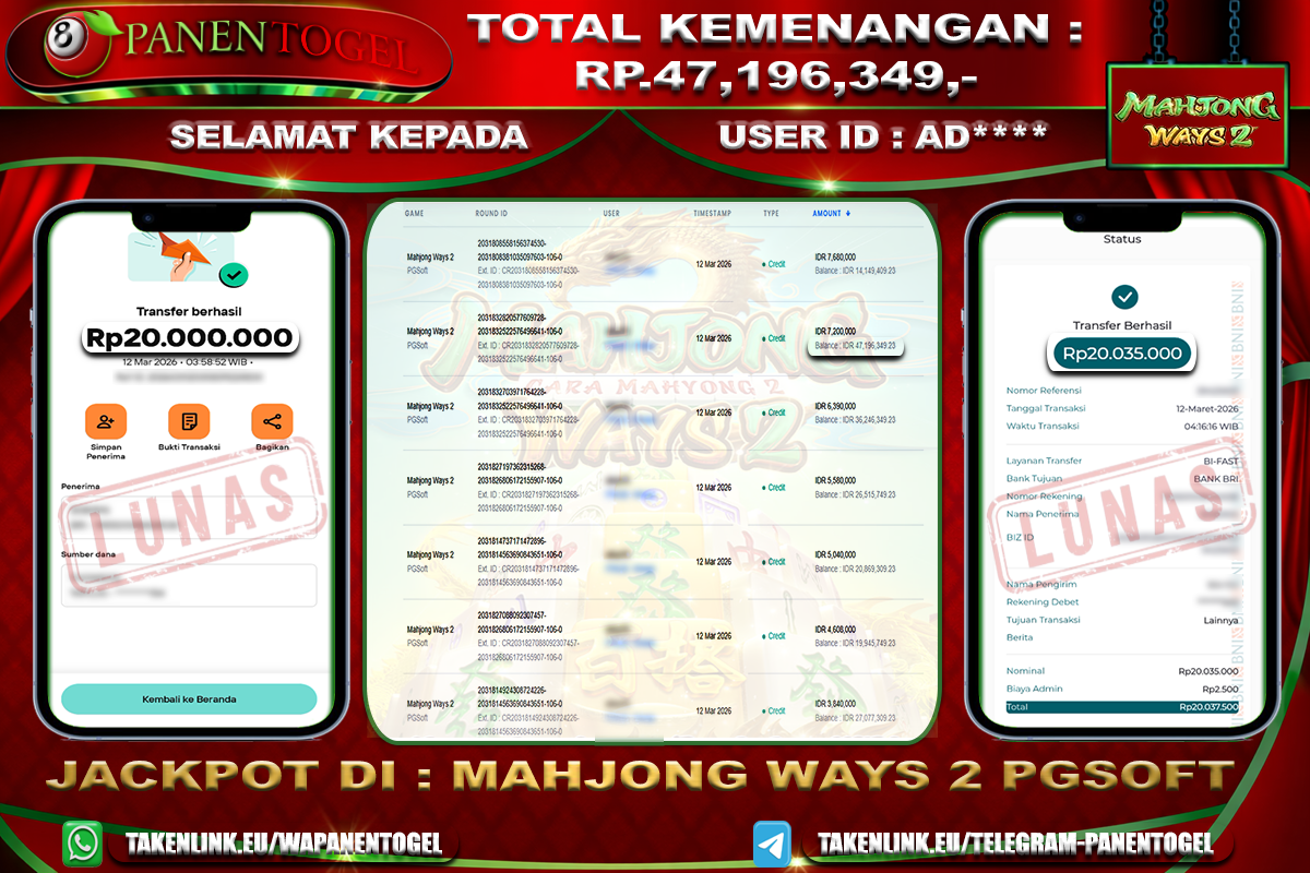 Selamat Kepada User ID : AD**** Member PANENTOGEL JACKPOT MAHJONG WAYS 2