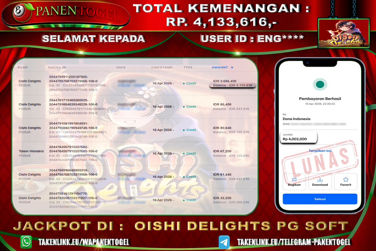 Selamat Kepada User ID : ENG**** Member PANENTOGEL JACKPOT Oishi Delights