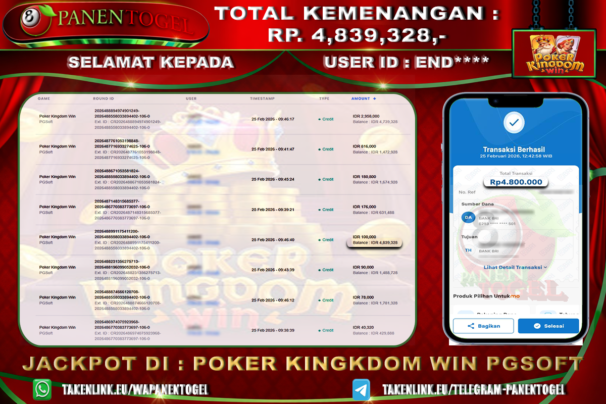Selamat Kepada User ID : END**** Member PANENTOGEL POKER KINGDOM WIN