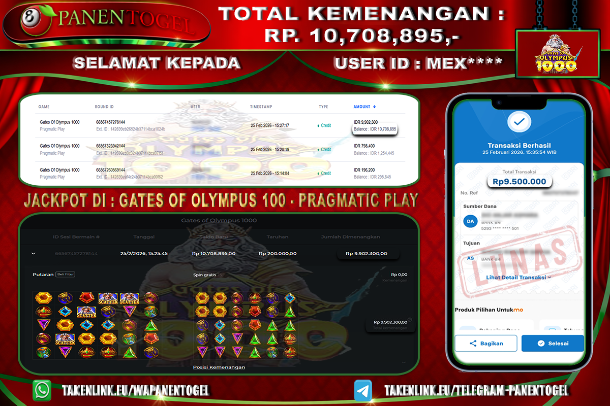BUKTI KEMENANGAN SLOT PANENTOGEL Rp. 10.708.895, - LUNAS