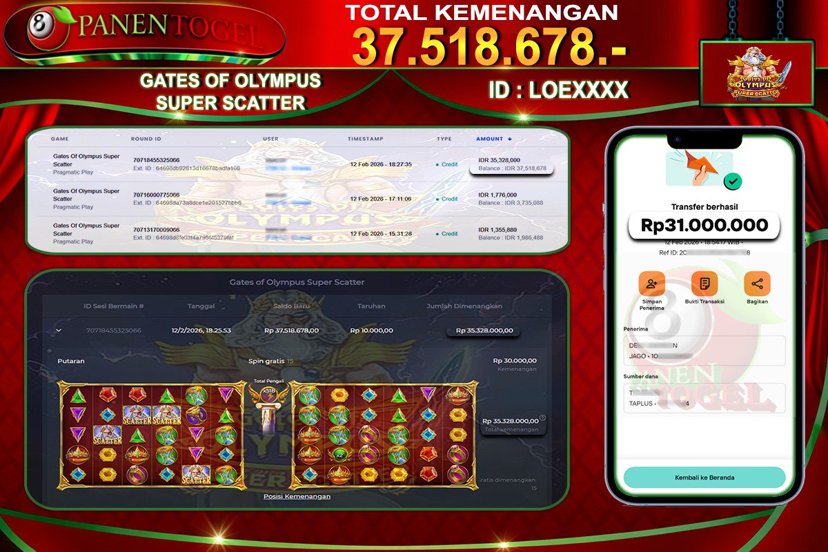 Selamat Kepada User ID : DBE**** Member PANENTOGEL JACKPOT GATE OF OLYMPUS SUPER SCATTER