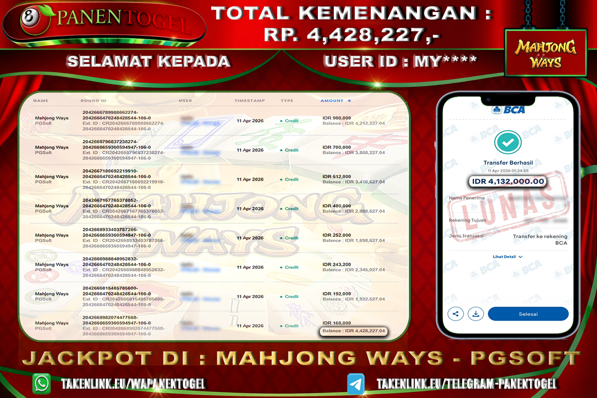 Selamat Kepada User ID : MY**** Member PANENTOGEL JACKPOT SLOT MAHJONG WAYS
