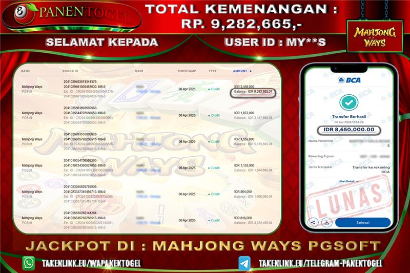 Bukti jackpot itu sendirilah bukti bawha betapa berkomitmen nya PANENTOGEL kepada member baru mau pun member lama, dengan kemenangan berapa pun pasti akan di bayar LUNAS tanpa banyak drama. Di PANENTOGEL, kamu bisa melihat dan menilai apakah jackpot benar-benar dibayar, proses transaksi cepat, dan sistem berjalan transparan.